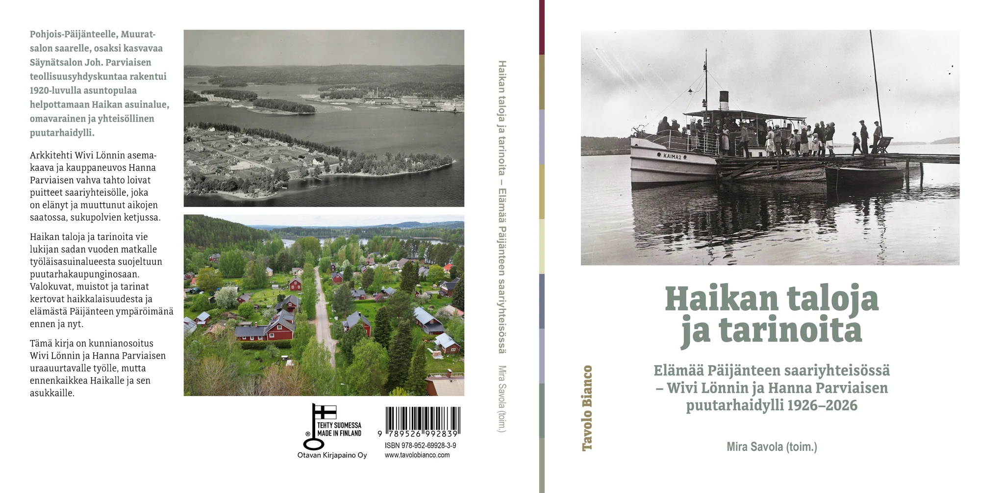 Haikan taloja ja tarinoita vie lukijan sadan vuoden matkalle työläisasuinalueesta suojeltuun puutarhakaupunginosaan. Valokuvat, muistot ja tarinat kertovat haikkalaisuudesta ja elämästä Päijänteen ympäröimänä ennen ja nyt.